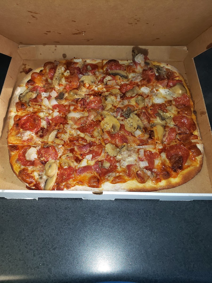 Our pizza always delicious. Me and my eldest son Jerome been coming since he was about 9 years old. He will be 56 this year. The Dad a gentle giant and the son and his wife super nice and courteous. Best pizza ever !! Photo is what’s left from large sausage and pepperoni. So good